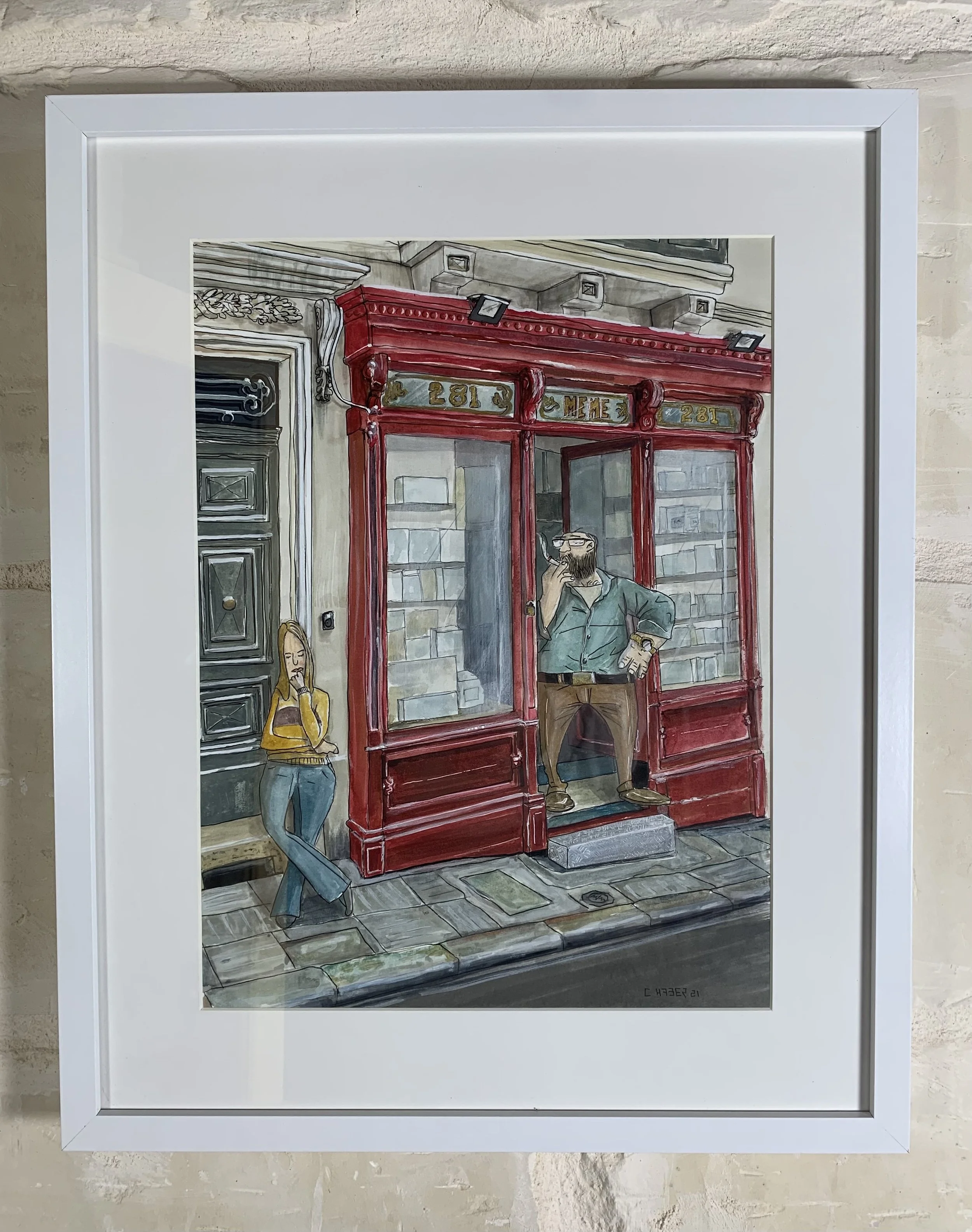 George Żammit is a small family owned shop in St. John street Valletta, supplying grocery items in a very traditional way of storing things on the shelf, pricing items and layout of the shop. The person at the door is not the owner but an Avatar representing the typical Maltese shop owner having a cigarette, feeding some crumbs to the pigeons and observing people passing buy. In this case it would be a typical stare observing a person snapping a photo unannounced. A typical day in Valletta!